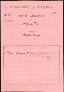 Lettera di Alessandro Torri a Alessandro Manzoni